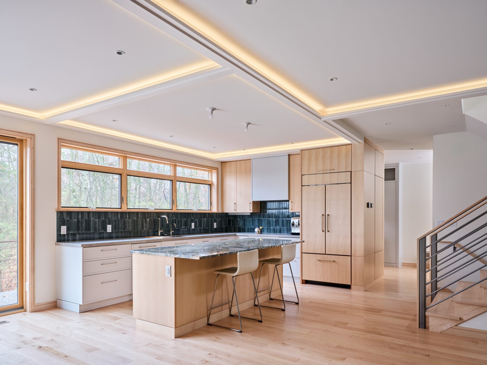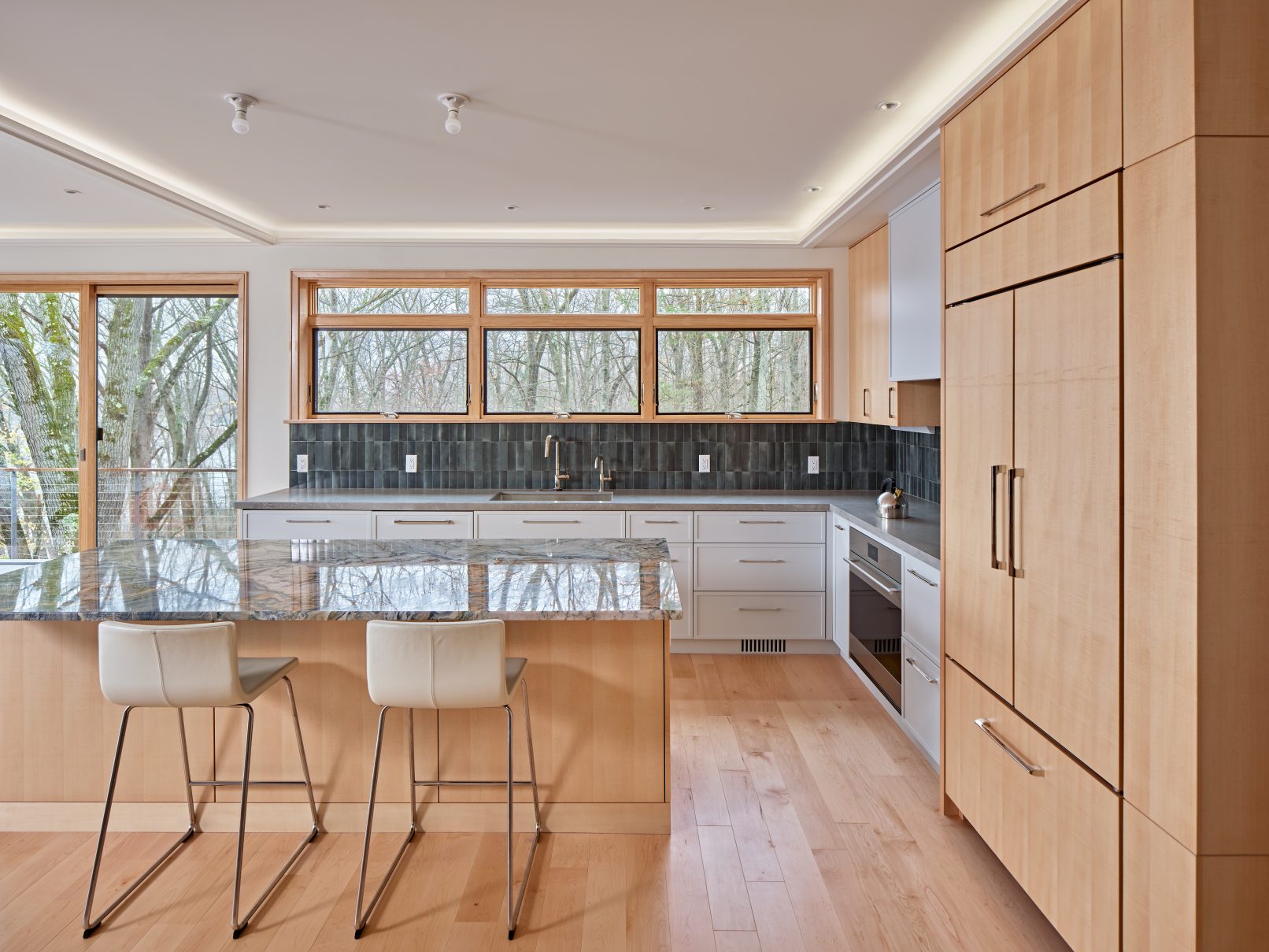- Zoning restrictions limited the structure to two stories, defining basements as 50% below grade—a challenge on terrain where retaining walls couldn’t artificially redefine grade.