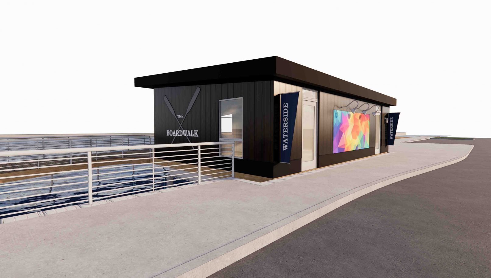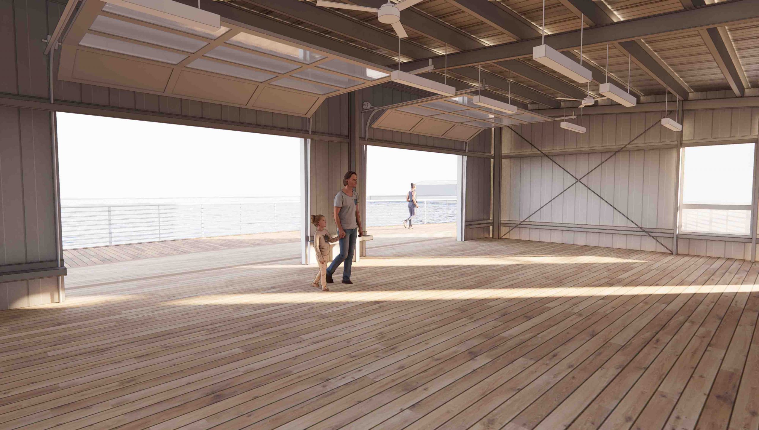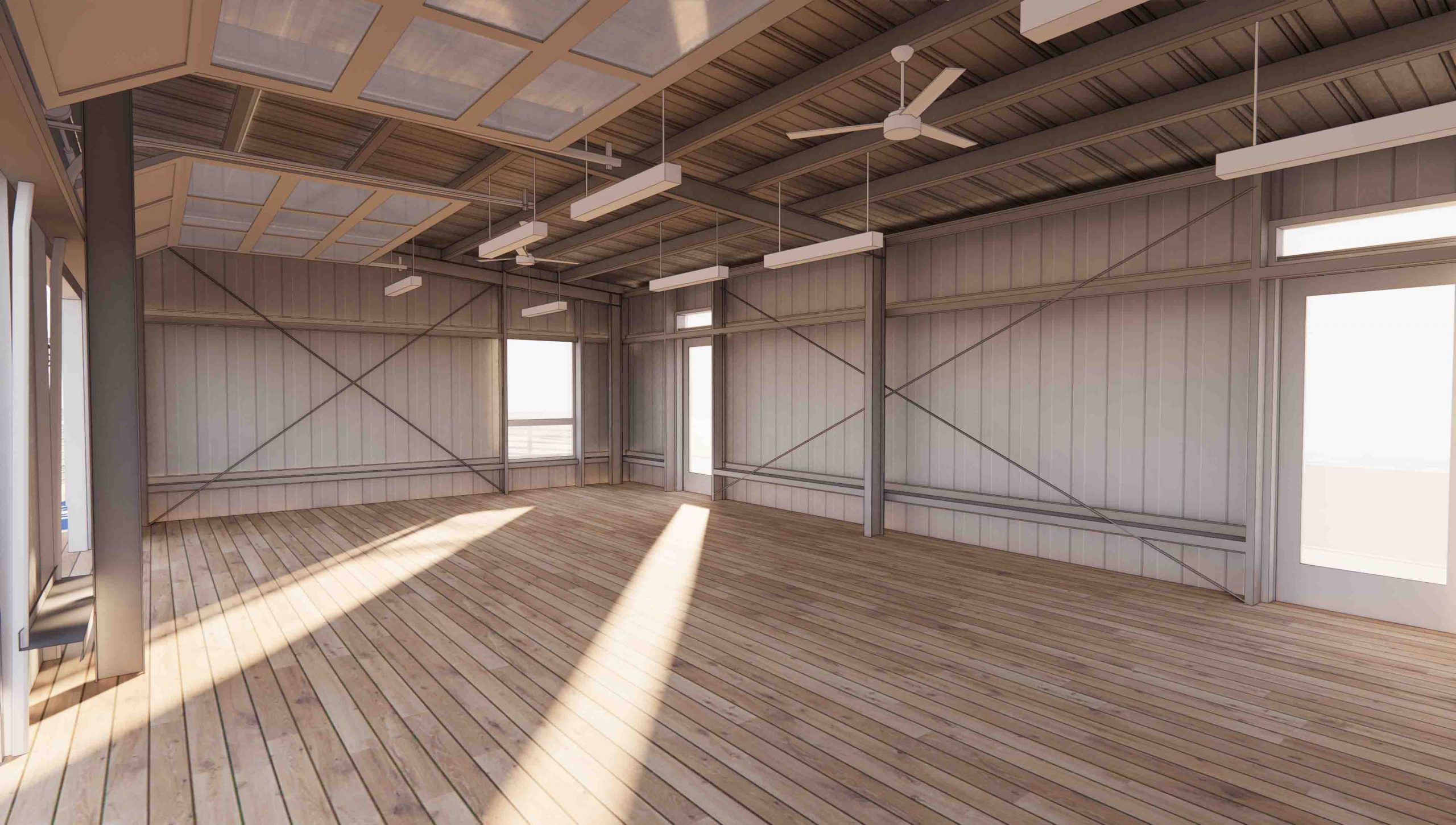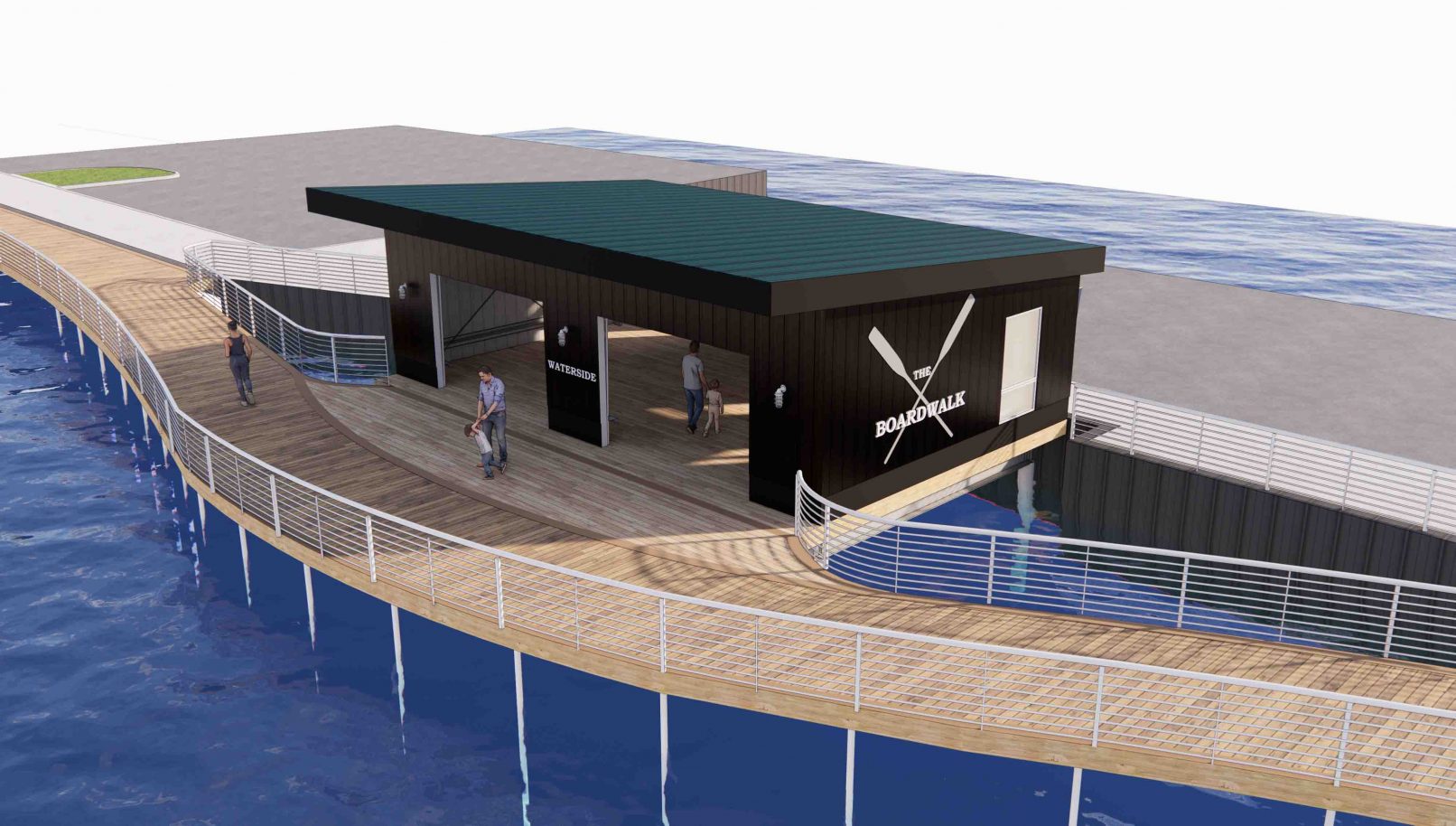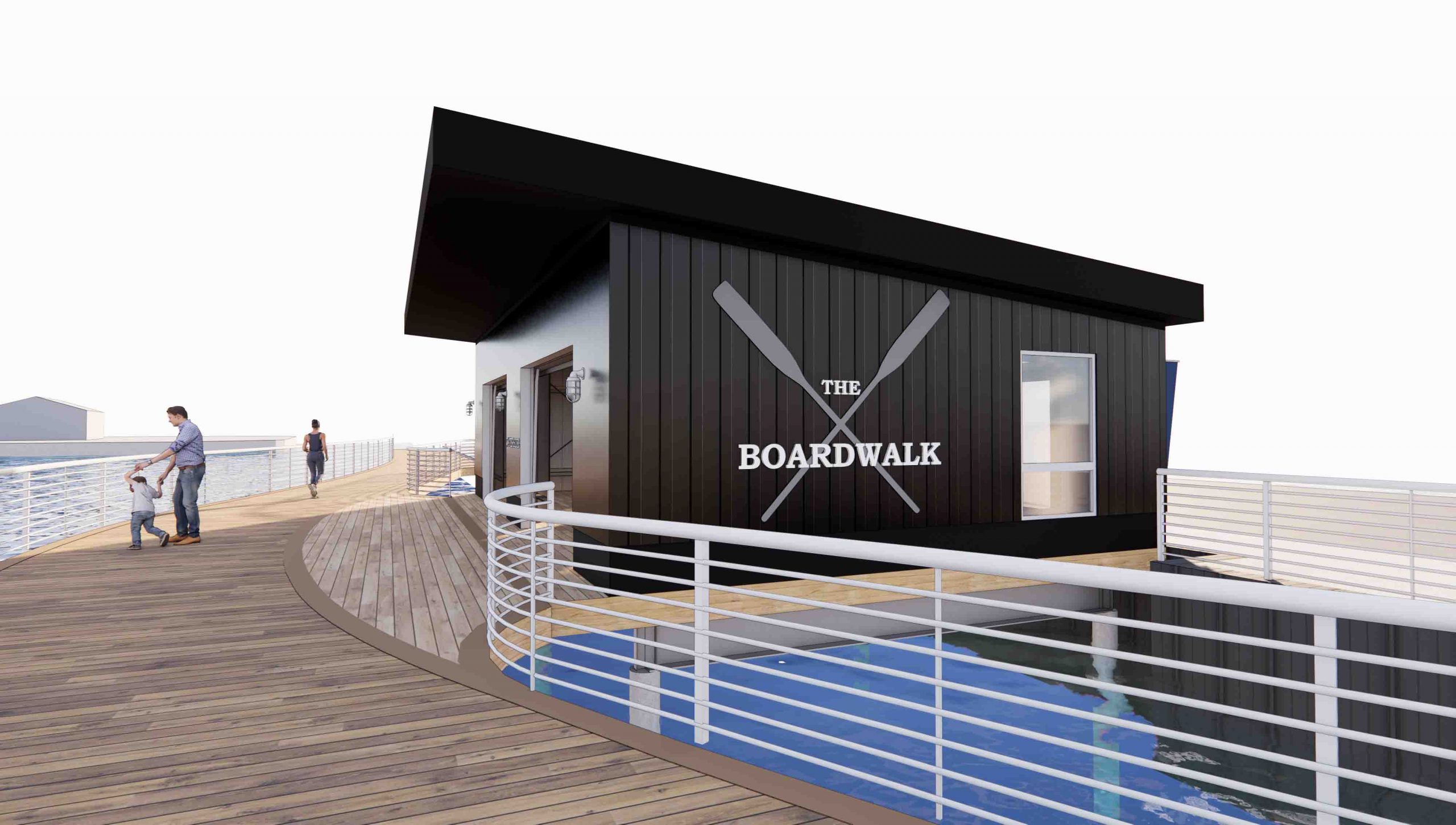 In partnership with ECT, O|X Studio was tasked with designing a versatile multi-purpose structure integrated with the park’s new boardwalk. The new structure was intended to provide shaded respite from the elements, serve as a seasonal marketplace, and accommodate the storage and/or rental of kayaks or paddle boards to the public. While the initial phase involved exploring the adaptive reuse of an existing boathouse, structural limitations led to the development of a completely new, modern facility. The resulting design offers an inviting, open-air experience for the public while remaining fully secure during off-hours.