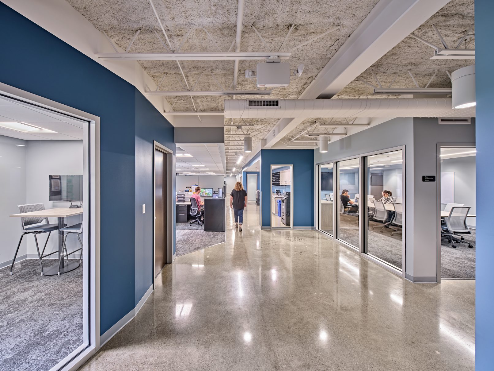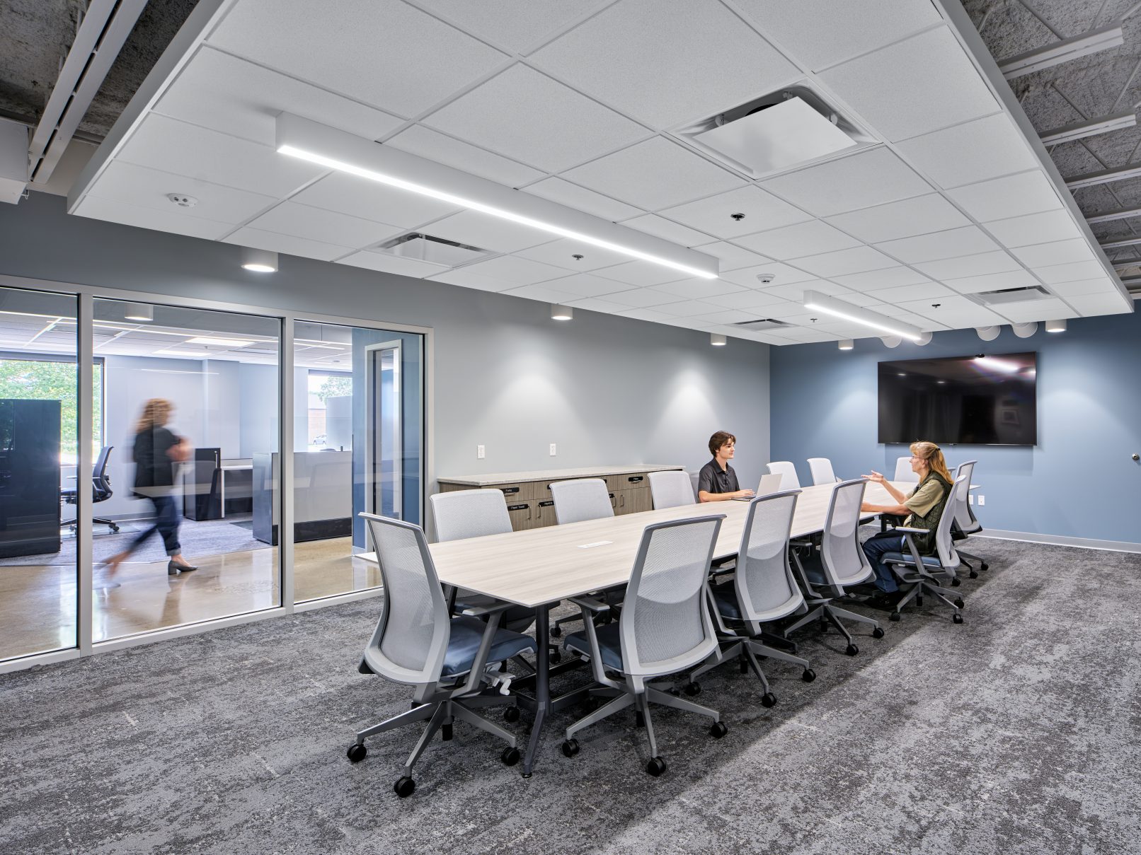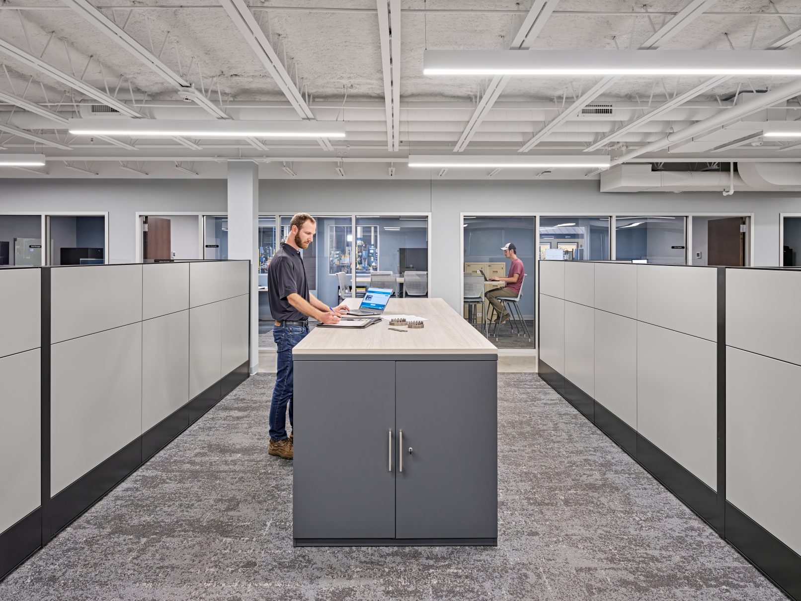 The Orbitform Office Renovation project seeks to enhance workspace efficiency through strategic floor plan adjustments, prioritizing increased natural light, and improved collaboration. The initial challenge of limited light was addressed by moving private offices inward, introducing storefronts for deeper daylight, and adding windows between the warehouse and offices. Informal collaboration areas cater to both office and factory staff. The redesigned floor plan centers around the Break Room as an activity hub, while relocating the main entry integrates the receptionist and maintains security. The design also includes a conference zone for visiting tradespeople. This renovation effectively balances functional improvements with design constraints, fostering a collaborative environment filled with natural light.