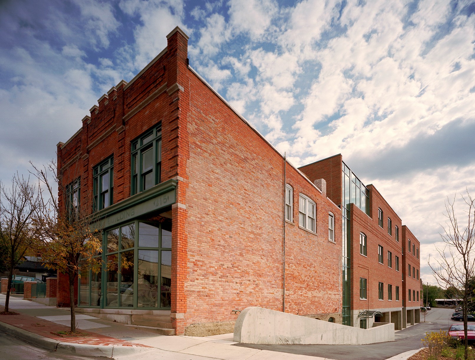 After close to 100 years in service, the family-run Schlenker Hardware store closed its doors to the public. Despite its location along a main thoroughfare in and out of the strong, downtown commercial shopping district, the block in which the building was located wasn’t holding its own. With a commitment to bring business and pedestrian traffic back to the area, the former hardware store’s second floor was transformed into a 1,800 sf apartment, the first floor was converted into office space and 15,000 sf of office space was also added on the rear of the building.
