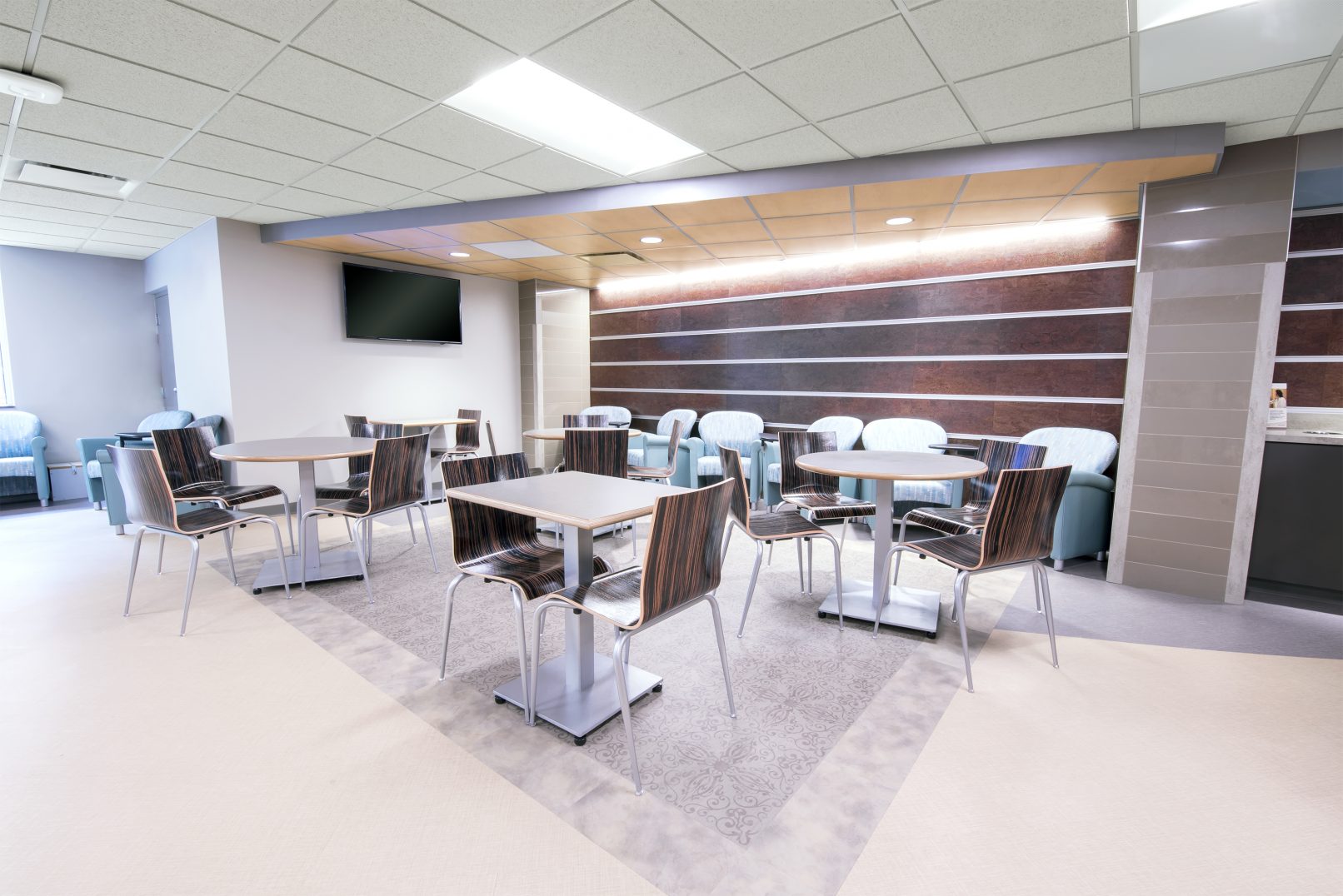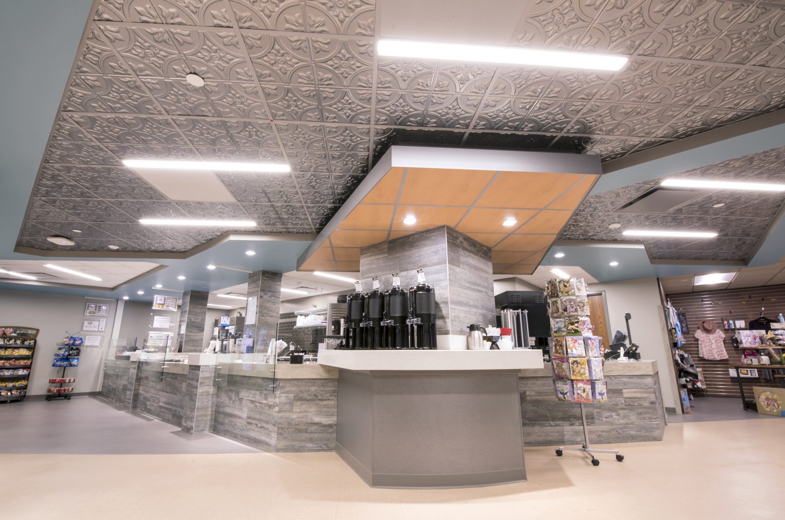 O|X studio led the design overhaul of Livingston Hospital’s public amenity, hospitality and support spaces, including a brand-new retail space with food service, a gift shop and renovated corridors. The new retail model, including Joe’s Java, features a redesigned and expanded cafeteria with a wide variety of healthy food options, a convenience store and comfortable seating in one dedicated area.